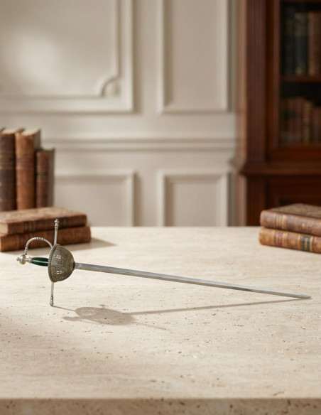 | Realizzata a Toledo, città riconosciuta per la sua tradizione in armi di qualità | Fidarsi dell'autenticità e del valore storico di un'opera artigianale spagnola | Collezionisti esigenti e appassionati di storia europea |