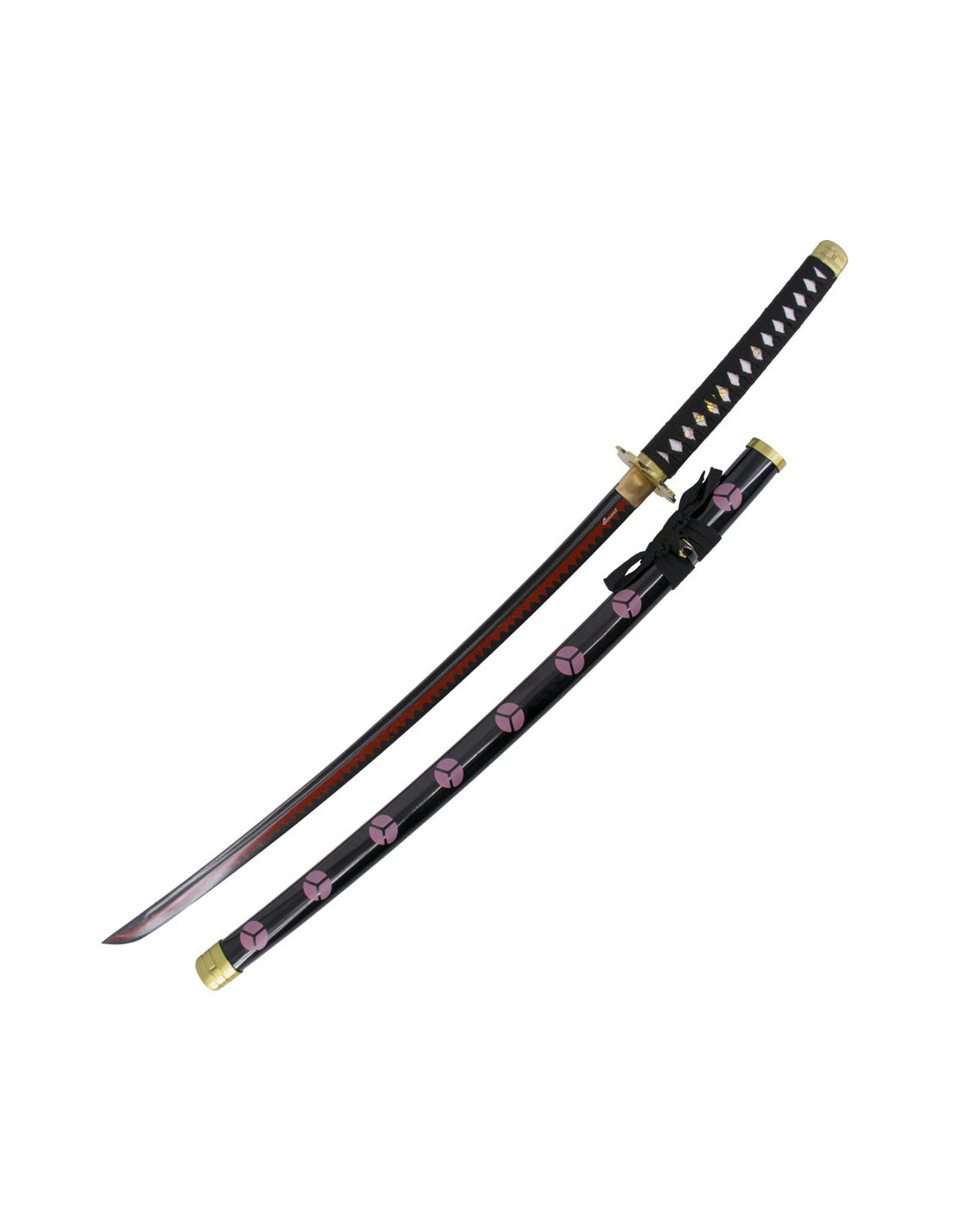 La katana pratica di base Shusui di Zoro dell'anime One Piece è una replica non ufficiale che non può mancare nella collezione di ogni fan della serie. Con una lunghezza di 105 cm, questa katana si distingue per la sua lama affilata in acciaio al carbonio AISI 1045 con finitura nera, con un accattivante dentato rosso che le conferisce un aspetto unico e caratteristico.