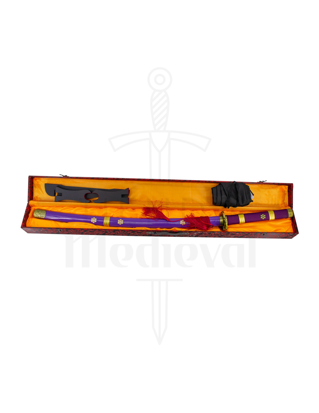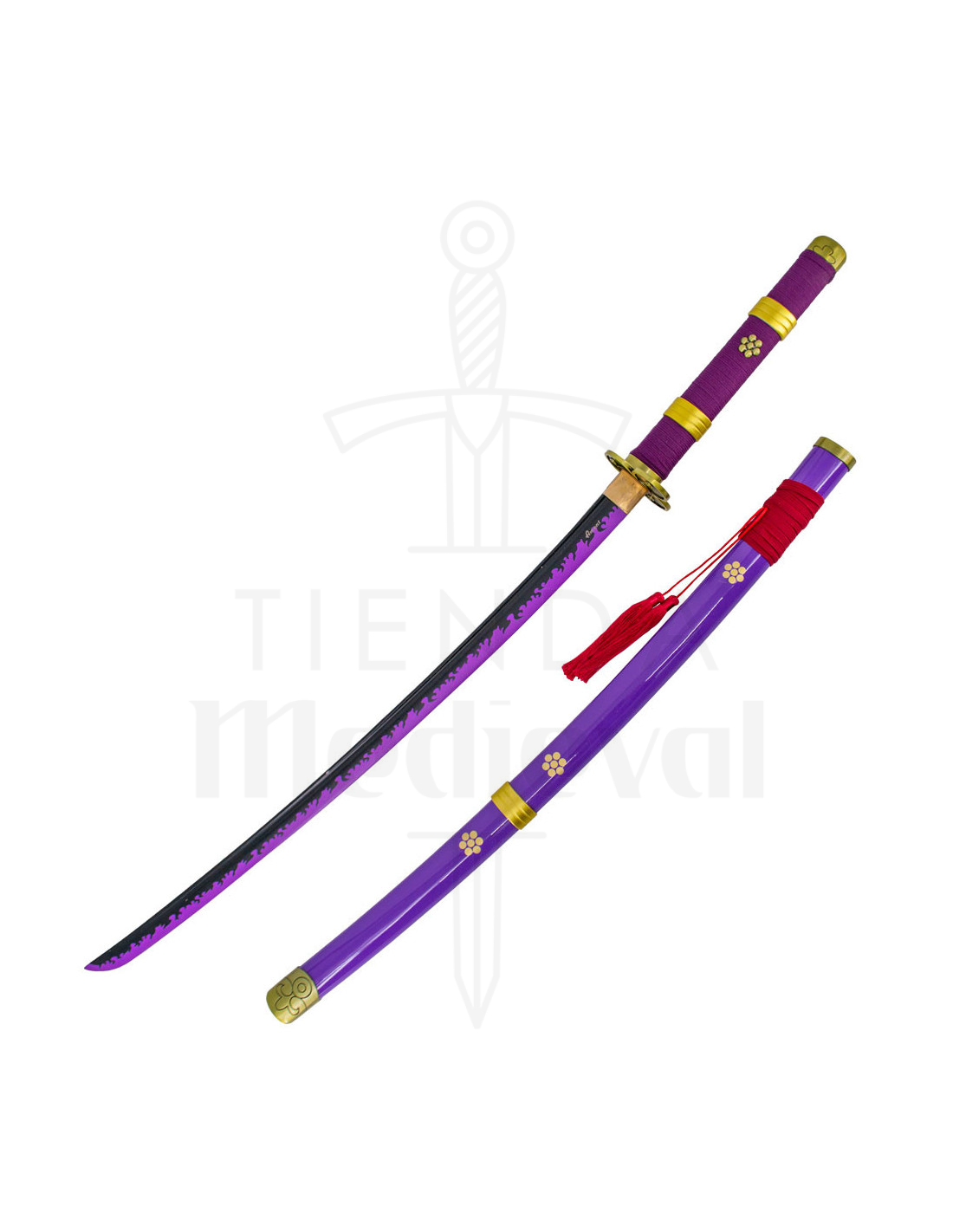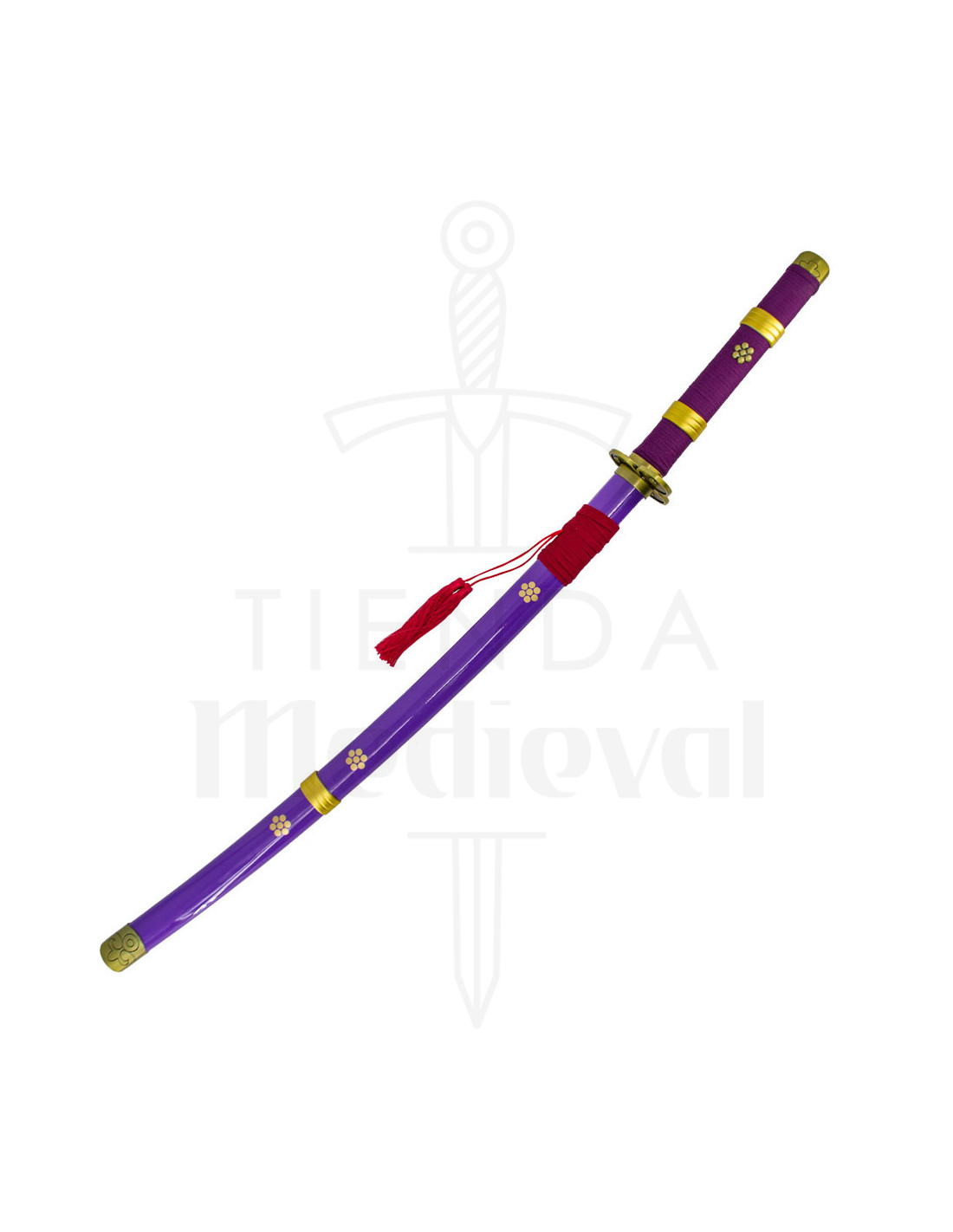 Fatti avanti con la straordinaria katana funzionale viola Enma di Zoro di One Piece! Questa riproduzione non ufficiale è un pezzo imprescindibile per ogni fanatico del famoso spadaccino Roronoa Zoro e del mondo di One Piece.