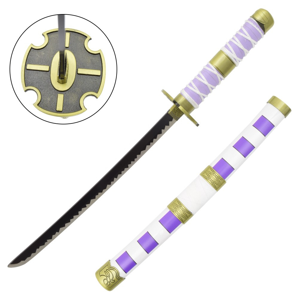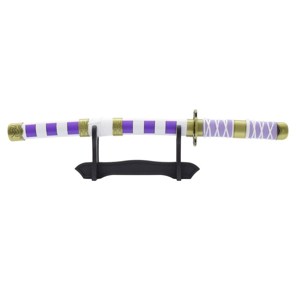 Questa katana in miniatura non è solo un omaggio alla serie One Piece, ma anche un pezzo decorativo che aggiungerà un tocco unico a qualsiasi spazio. Le sue dimensioni compatte lo rendono versatile da posizionare su scaffali, scrivanie o vetrine, essendo al centro dell'attenzione ovunque lo metti.