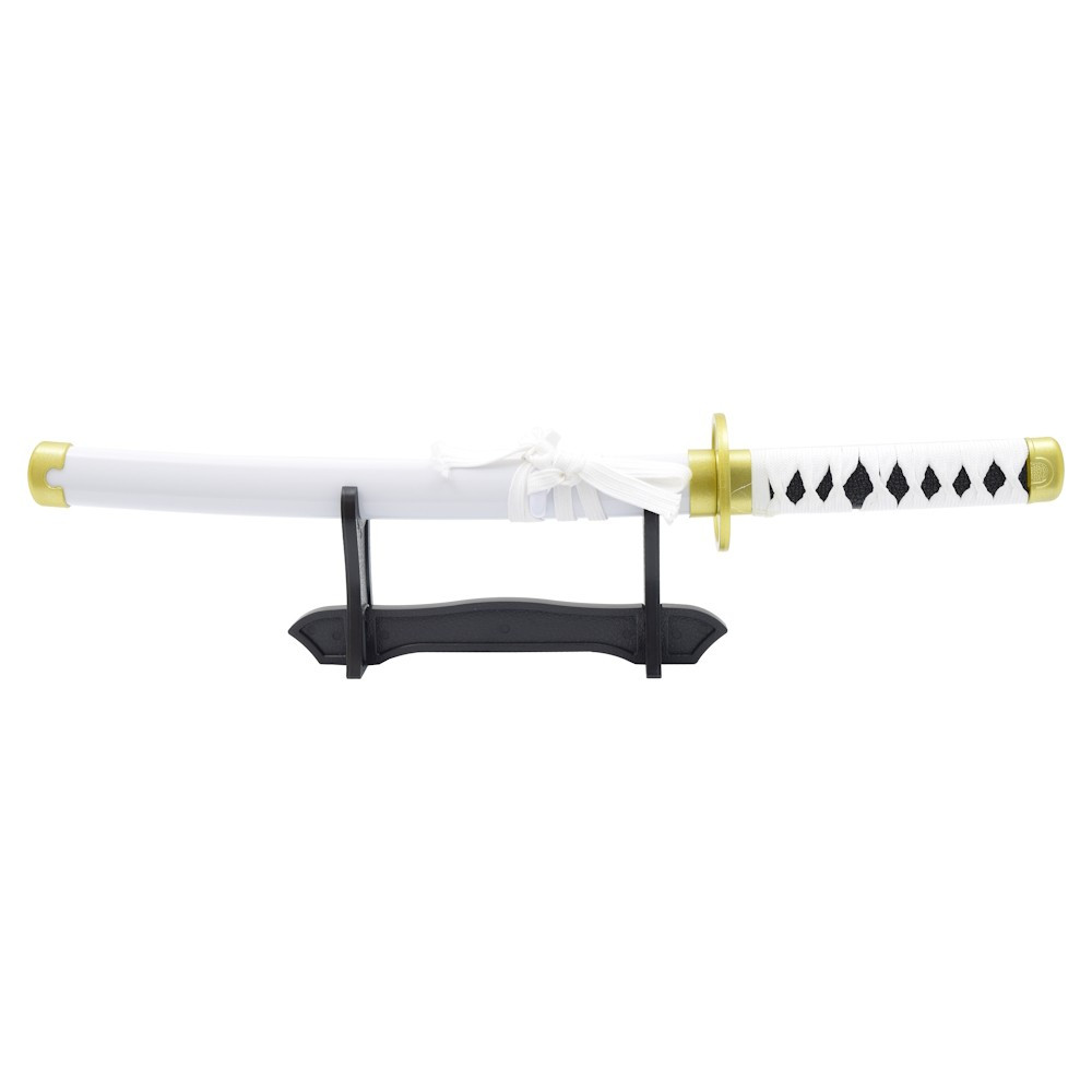 La spada è dotata di un manico (tsuka) e di un fodero in plastica, che le conferisce un aspetto fedele all'originale, ma allo stesso tempo mantiene leggerezza e resistenza. Con una lunghezza totale di 425 mm (450 mm con il fodero) e un peso di soli 60 g (120 g con il fodero), è un'opzione ideale per collezionisti e fan che desiderano un pezzo compatto e accattivante da esporre.