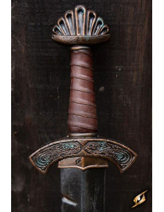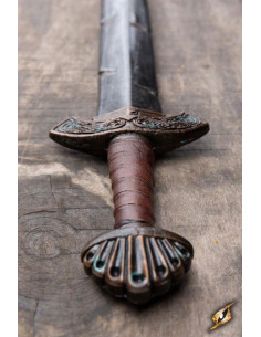 La Viking Battleworn Sword, del rinomato marchio Epic Armoury, ha misure ideali per il combattimento: una lunghezza totale di 85 cm e una lama di 65 cm. Il suo design e la sua qualità ne fanno una scelta essenziale per qualsiasi amante della storia vichinga o per coloro che cercano una spada di alta qualità per i loro giochi LARP.