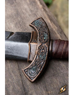 Il manico della Viking Battleworn Sword è dettagliato ed è lungo 10 cm. È accuratamente fuso e dipinto per imitare perfettamente l'aspetto della pelle realistica avvolta attorno a un'elsa e un pomo intagliati. Ti sembrerà di avere tra le mani un'arma leggendaria!