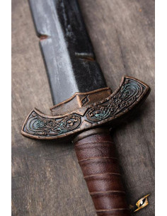 Ma non è tutto, questa spada si distingue anche per i suoi effetti unici di dettagli dipinti e scolpiti, come macchie di ruggine e graffi. Questi dettagli gli conferiscono un aspetto autentico e invecchiato, evocando la storia e il coraggio dei guerrieri vichinghi.