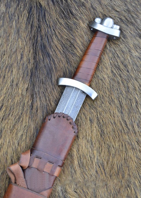 Realizzata con la tecnica ancestrale dell'Acciaio Damascato, questa spada combina durezza e bellezza con una precisione che solo i veri custodi apprezzano. La lama di 79,5 cm e il suo equilibrio perfetto ti offrono una sensazione di libertà e padronanza in ogni movimento. Ogni dettaglio, dal pomo imbullonato alla guaina in pelle, respira storia e qualità. La Spada Vikinga del Re Goffredo I non è solo un oggetto, è un simbolo di patrimonio e resistenza che ti fa sentire invincibile. Il potere, la storia e l'autorità ora sono nelle tue mani, pronti ad essere reclamati.