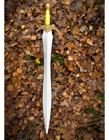 I dettagli in rilievo sul pomello e le decorazioni sulla guardia non sono solo ornamentali, ma aiutano anche a completare un costume coerente e credibile, elevando il realismo della tua interpretazione in teatro, cosplay o ricostruzione storica. Se stai pensando di acquistare Aelinor per la tua prossima avventura, troverai un pezzo adatto sia per giochi di ruolo dal vivo che per messa in scena scenica.