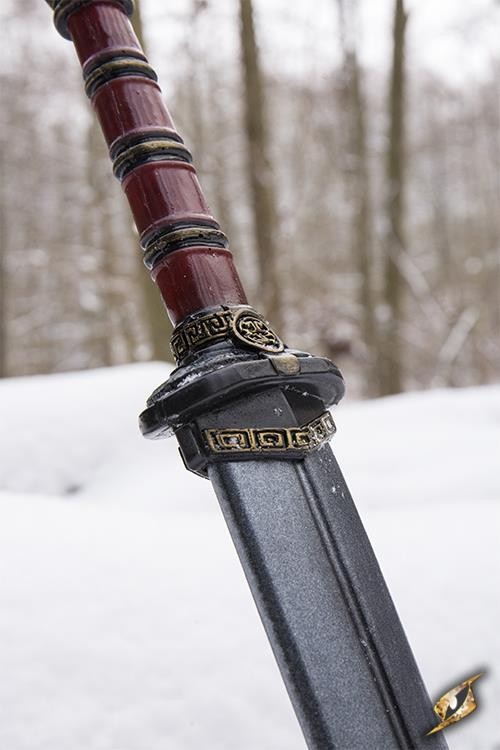 Con questa spada, ogni combattimento diventa genuino, intenso e autentico. La sua lama dipinta a mano, in una tonalità acciaio che cattura l'essenza della storia, ti permette di connetterti con millenni di tradizione in ogni colpo. La sua costruzione in materiali di prima qualità, rinforzata con fibra di vetro, garantisce resistenza e durata, così puoi fidarti di lei nelle battaglie più dure. L'impugnatura ergonomica di 13 cm e il suo peso di 252 gr. rendono ogni movimento agile e preciso, come se la sentissi crescere nella tua mano. Questa non è solo una spada, è il tuo ponte verso una performance superiore, e la differenza tra combattere e dominare.
