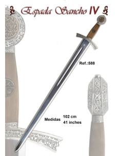 Questa preziosa replica della spada storica di Sancho IV di Castiglia è un'esclusiva spada di alta qualità della Collezione di "Spade Storiche" prodotta da MARTO®. Con un certificato di origine e qualità, questa spada è stata realizzata a Toledo, la culla della forgiatura delle spade.