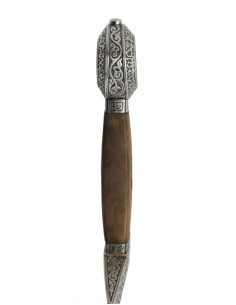 - Pomo: Tutto cesellato, presenta bellissimi merletti arabi sui due cerchi delle facce e sulle superfici laterali dei coni si ripetono gli stessi motivi della croce.