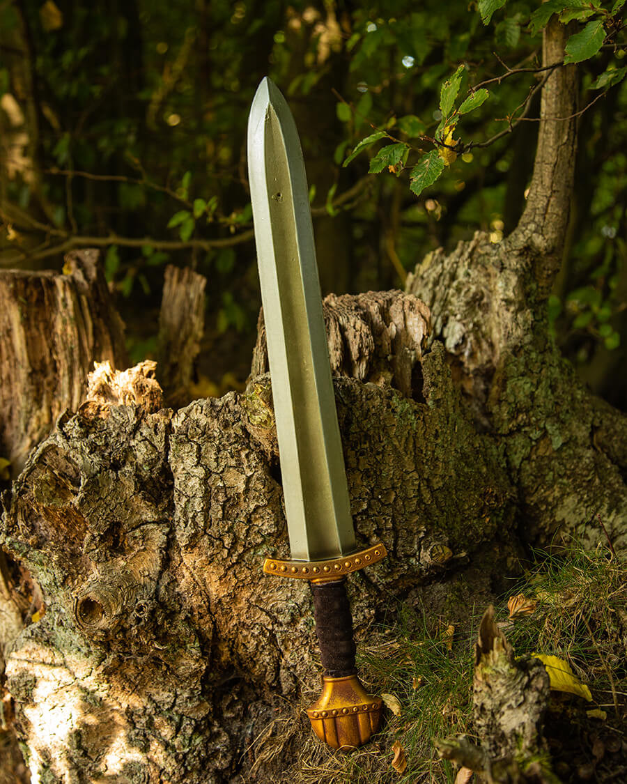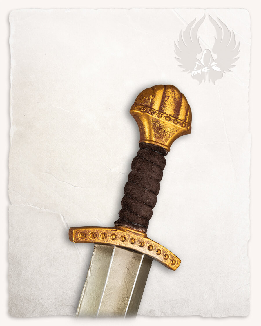 La spada corta vichinga modello LARP Fidas con finitura dorata è la scelta perfetta per chi cerca un'esperienza di combattimento sicura ed emozionante nel mondo dei giochi di ruolo dal vivo. Intraprendi le tue saghe vichinghe con questa spada progettata per l'azione. Che l'avventura nelle terre vichinghe abbia inizio!