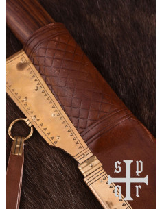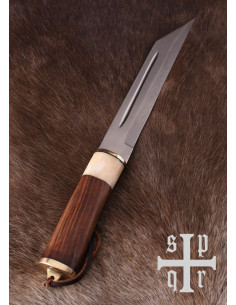 Quest'arma, realizzata da SPQR, combina la durabilità di un acciaio ad alto contenuto di carbonio con l'eleganza di dettagli in legno, osso e ottone che evocano epoche passate. Dal peso leggero di 450 grammi alla lunghezza perfetta di 43,5 centimetri, ogni elemento è stato pensato per offrire un equilibrio tra autenticità e funzionalità. La fondina in cuoio con dettagli in ottone non solo protegge la lama, ma rafforza la sensazione di esclusività. Con questo pezzo, non possiedi solo una spada, ma una narrazione tangibile di storie epiche, pronte a essere rivissute nella tua presenza e in ogni movimento, in ogni ricostruzione o esposizione che ti proponi. Perché tu non cerchi solo di avere oggetti, cerchi di vivere la storia e di sentire in ogni tocco lo spirito dei vecchi combattenti, capendo che essere un collezionista va oltre custodire oggetti — si tratta di rivivere passati gloriosi e trasmettere questa passione a chi ti circonda.