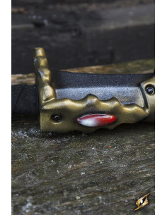La spada LARP Soul Stealer ha una lunghezza totale di 110 cm, con una lama a doppio taglio di 80 cm. Le sue dimensioni imponenti assicurano che non passerai inosservato sul campo di battaglia. Inoltre, il suo parafango ovale impreziosito da gemme non solo gli conferisce un aspetto elegante, ma protegge anche il manico rivestito in pelle scamosciata da 10 pollici, offrendoti una presa sicura e confortevole.