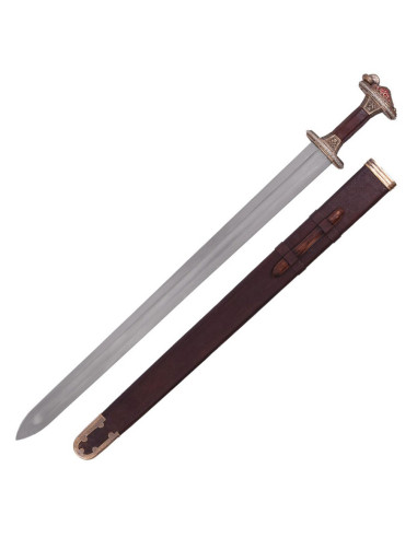 Ciò che distingue davvero questa spada è la sua guardia incrociata, che presenta un design finemente inciso e protegge un'impugnatura che si assottiglia verso il pomo corrispondente. Questo dettaglio aggiunge un tocco di autenticità ed eleganza alla spada, rendendola perfetta sia per cavalieri coraggiosi che per paladini di grande reputazione.