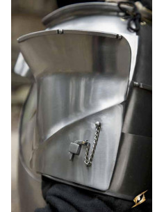 Sono decorati con una piastra superiore smussata per deviare ulteriormente gli attacchi, nonché un perno a catena per attaccare un distintivo. Fissali legando i passanti di tela a un pettorale o gambero e tirando le cinghie di cuoio intorno alle braccia. Sono completamente utilizzabili con il set di armature milanesi di Epic Armory, così come con gli altri prodotti per la lavorazione dei metalli di Epic Armory, dandoti la libertà di personalizzare l'abbigliamento del tuo personaggio.