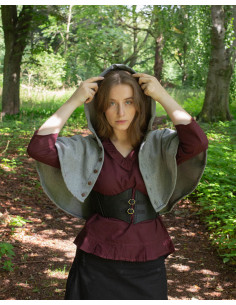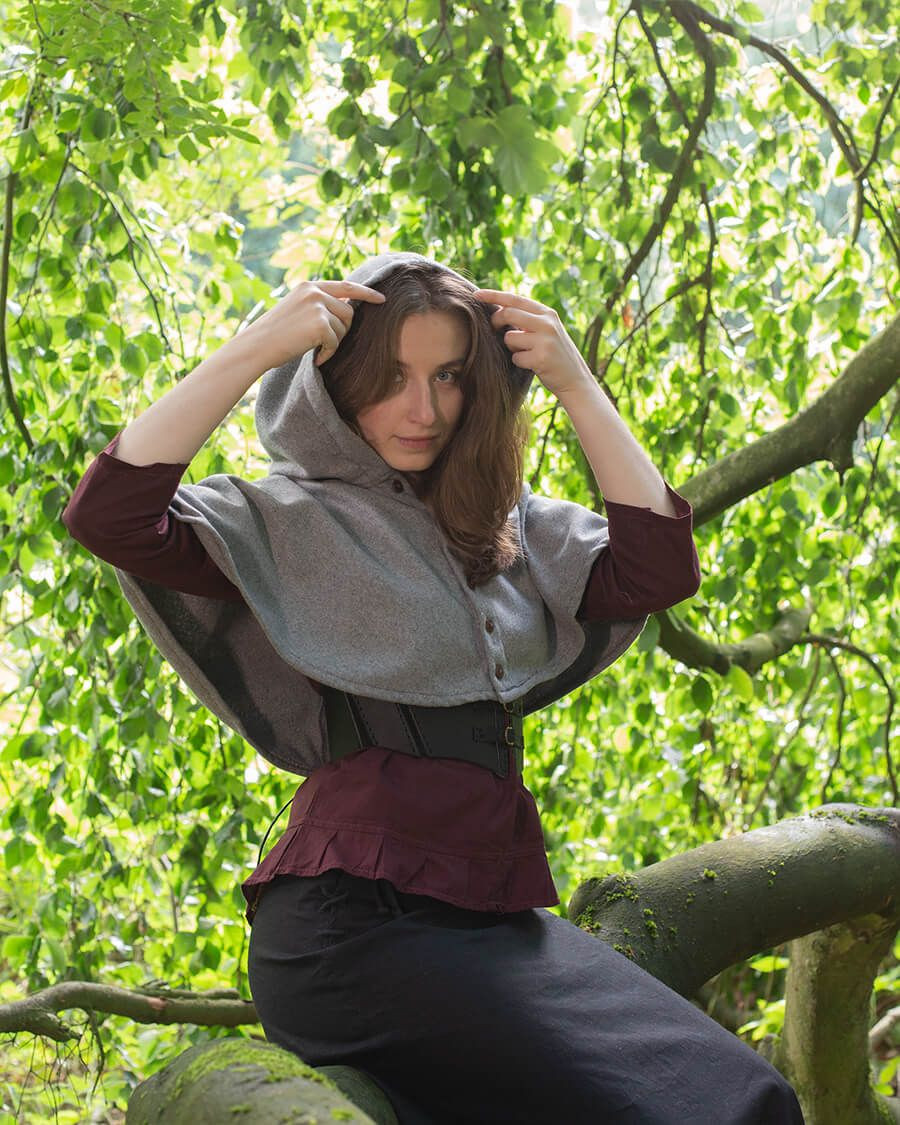 Il coprispalla medievale con cappuccio "Notker" in grigio non è solo un indumento pratico per proteggerti dal sole e dalle intemperie, ma è anche un'aggiunta elegante al tuo abbigliamento medievale. Che tu sia ad un mercato medievale, ad un evento di rievocazione storica o semplicemente desideri aggiungere un tocco di autenticità al tuo guardaroba, "Notker" è la scelta perfetta. Unisciti all'avventura medievale con stile e funzionalità!