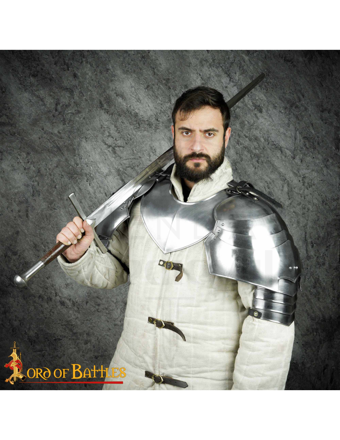 Vuoi trasformare ogni ingresso in un evento e essere al centro di tutte le attenzioni nella tua prossima ricreazione medievale o convenzione? Questo set eleva la tua presenza con una miscela di protezione ed estetica che non lascerà dubbi sul tuo ruolo nel conflitto.