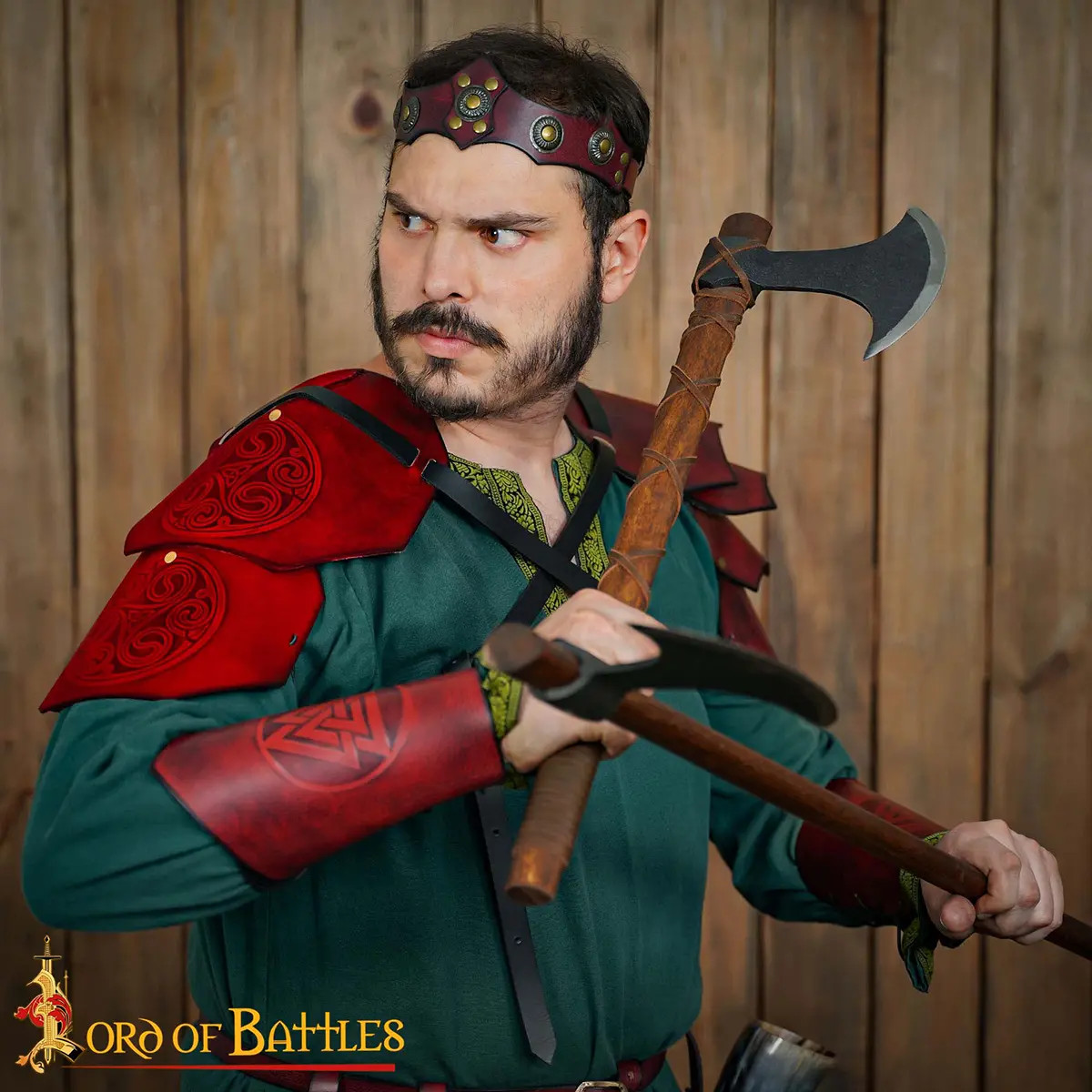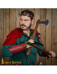 Progettata come pezzo unico per una sola spalla, offre libertà di movimento e leggerezza, rendendola perfetta per eventi tematici, ricreazioni e LARP dove la mobilità è fondamentale. Le cinghie regolabili in cuoio con fibbie in ottone invecchiato consentono un fissaggio sicuro ed elegante, rendendo facile la sua posizione e adattandosi a diverse silhouette senza complicazioni.