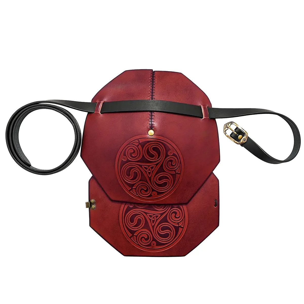 Questa spalliera artigianale combina cuoio genuino lavorato a mano, colore bordeaux con sfumature profonde, e un rilievo di nodi celtici che porta carattere senza perdere comfort. Il cuoio tinto e ripiegato a mano crea pattern con rilievo intenso, rendendo ogni pezzo visivamente unico e guadagnando personalità con l'uso. Indossandola, sentirai come conserva la sua forma e, allo stesso tempo, si adatta al tuo corpo per offrire maggiore confort nel tempo.