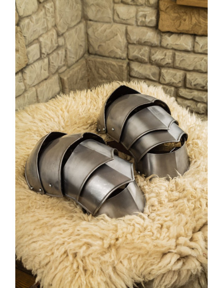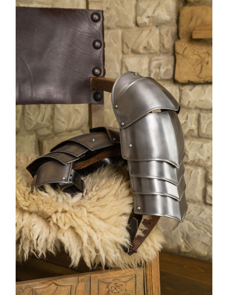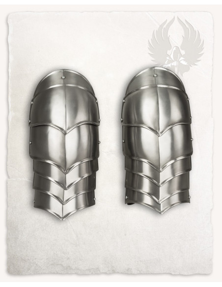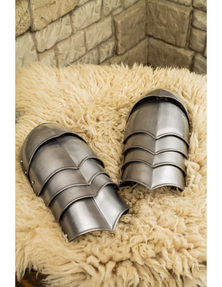 Il design curvato e la superficie lucida creano una finitura brillante, che esalta qualsiasi insieme di armature e aggiunge un'estetica sofisticata nel combattimento storico o in esposizione. L'anatomia dei pezzi si adatta alla curvatura naturale del braccio, traducendosi in una vestibilità comoda e una postura più sicura, senza sfregamenti scomodi o ostacoli per sollevare il braccio.