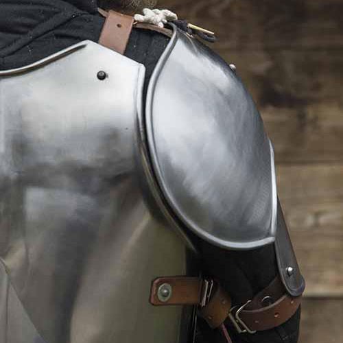 Immagina che ogni movimento scorra con la sicurezza di avere una protezione reale, senza sacrificare agilità. Grazie al loro peso equilibrato e alla loro struttura resistente, queste spalline non migliorano solo il tuo aspetto, ma ti offrono anche la fiducia di essere pronto per ogni sfida. Il materiale in acciaio di alta qualità ti assicura durabilità, resistenza e autenticità in ogni utilizzo, mentre la versatilità nella regolazione ti permette di sembrare un soldato medievale in diverse situazioni. È l'opportunità di elevare la tua presenza in eventi storici, ricostruzioni o nella tua collezione personale, sapendo che la protezione non compromette il tuo stile o i tuoi movimenti. Scommettere su queste spalline significa scegliere un simbolo della tua passione e dell'impegno nel rivivere intensamente quell'epoca d'oro ad ogni passo che fai.