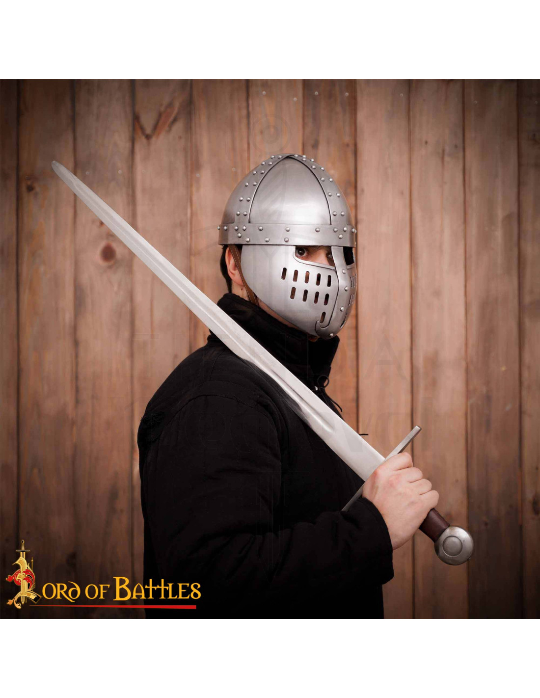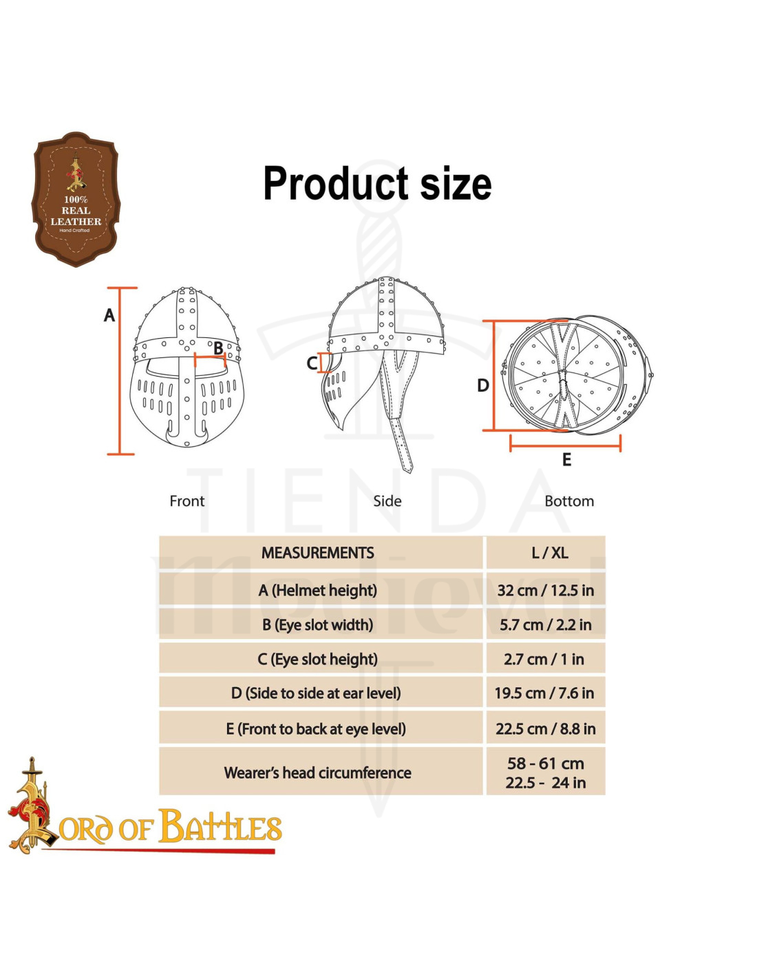 Questo casco non solo offre una protezione efficace in combattimento, ma è anche l’accessorio perfetto per chi desidera distinguersi in fiere medievali, ricostruzioni storiche o esposizioni tematiche, trasformando qualsiasi scenario in una vera avventura medievale.