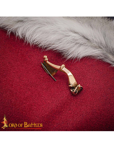 L'arco elegante e la testa con pomello non solo conferiscono un fascino estetico classico, ma facilitano anche un attacco sicuro ed elegante su tessuti, offrendo un punto di fissaggio che abbellisce senza compromettere il comfort. La piastra di attacco allungata e triangolare, insieme al meccanismo a molla a doppio avvolgimento, garantisce un fissaggio affidabile, ideale per uso in ricreazioni, costumi dettagliati o come oggetto funzionale in abbigliamenti storici.