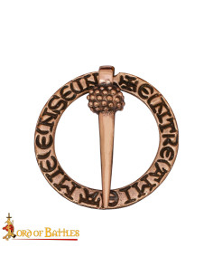 Spilla medievale nordica a forma di anello con incisioni, finitura in ottone invecchiato