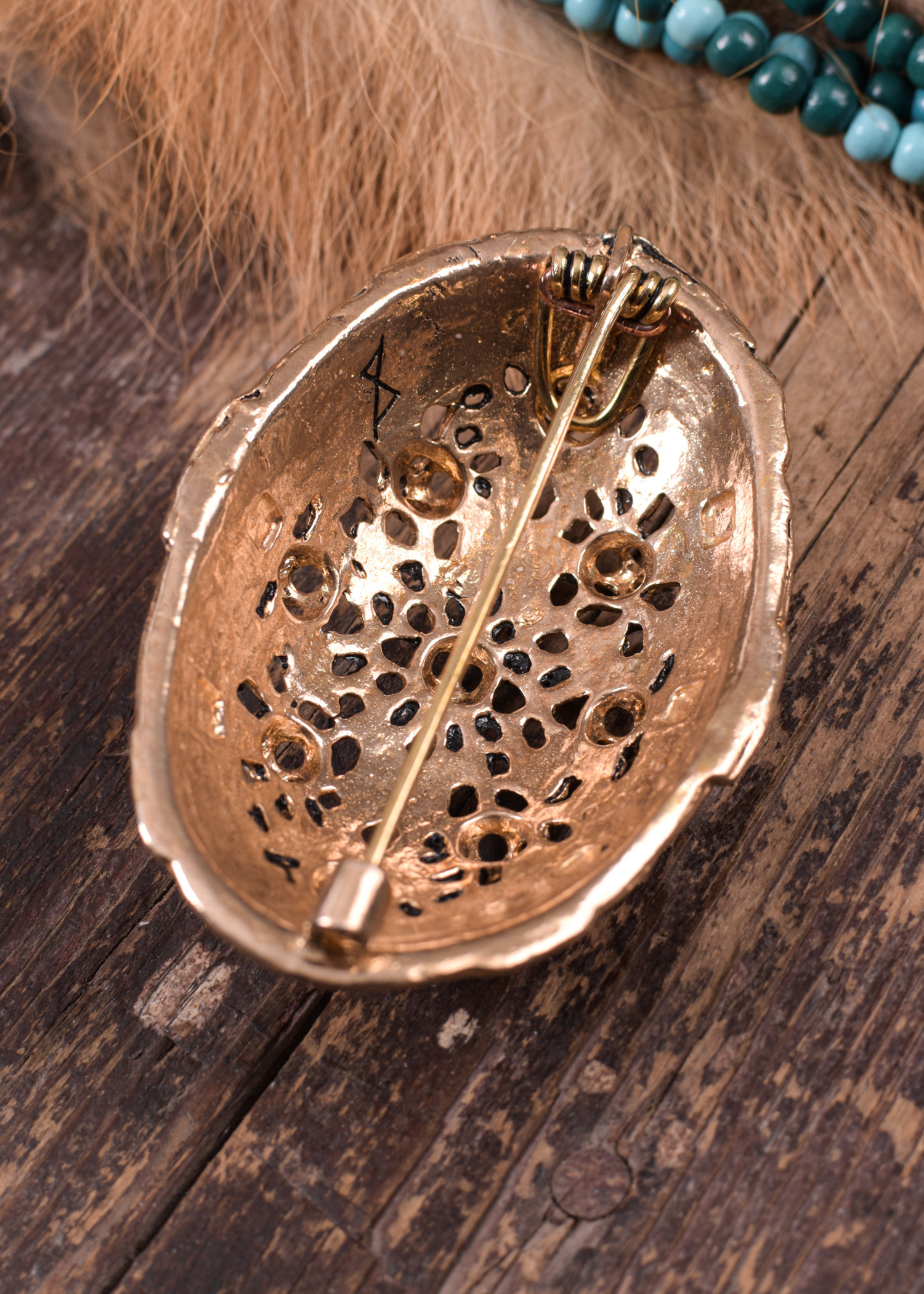 Spilla vichinga di forma ovale fantasia fatta a mano