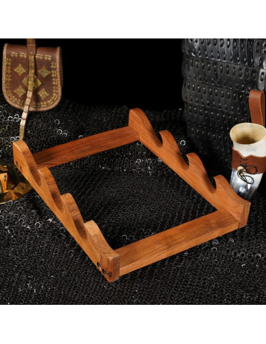 Immagina un luogo speciale dove ogni spada ha il suo spazio e appare come un vero tesoro. Basta posizionare le tue katane su questo supporto e in pochi secondi avrai una mostra che invita all'ammirazione e trasmette rispetto per la cultura giapponese e l'arte dei samurai. Inoltre, il suo finissaggio in legno verniciato nero conferisce un tocco sobrio e sofisticato che si abbina a qualsiasi ambiente.