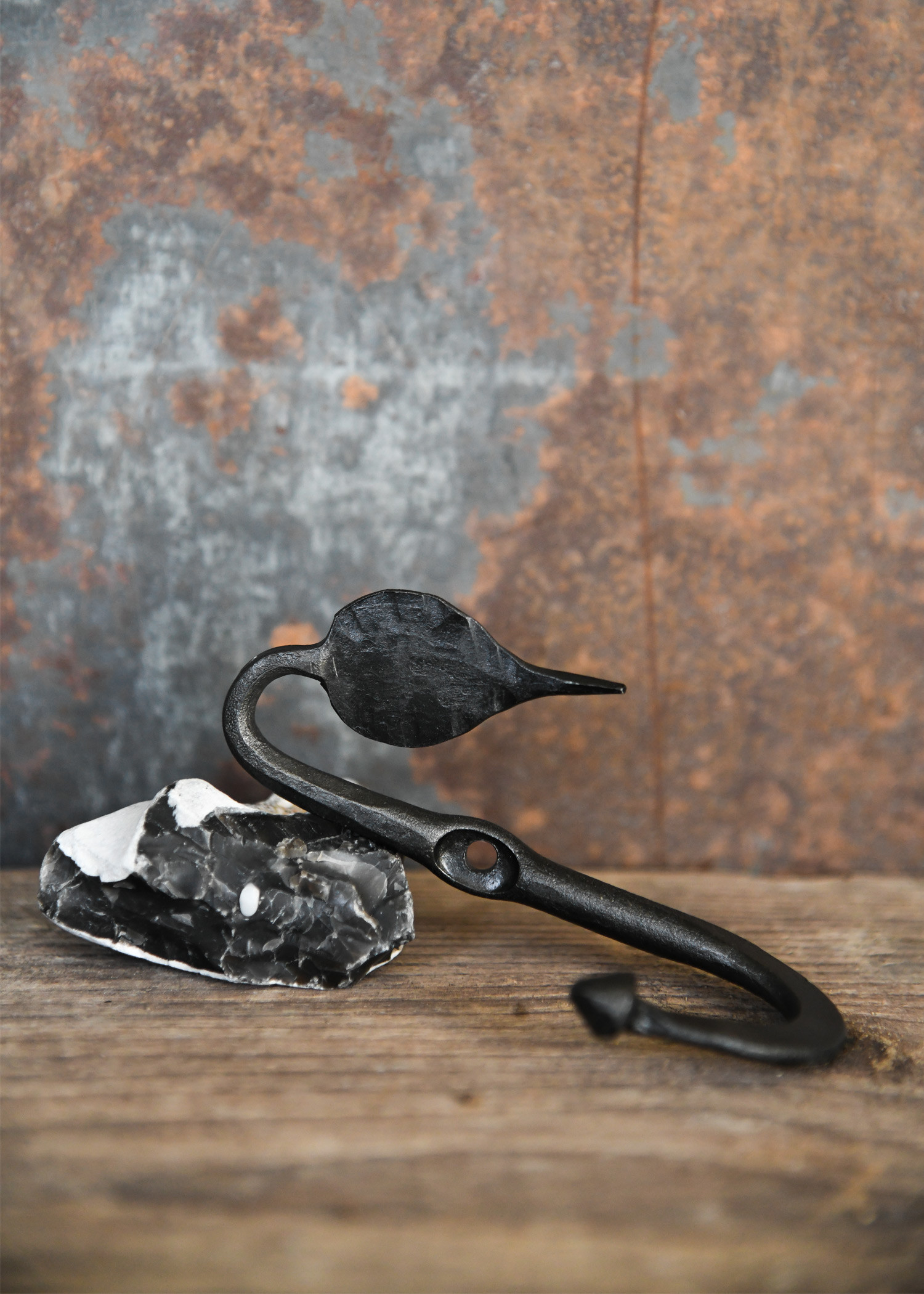 - Tocco autentico con finitura naturale: mantenendo l'autenticità della tradizione, il gancio in ferro conserva la sua finitura naturale, mostrando lo strato di scaglie forgiate che gli conferisce un aspetto autentico. Ogni dettaglio racconta una storia di artigianalità.