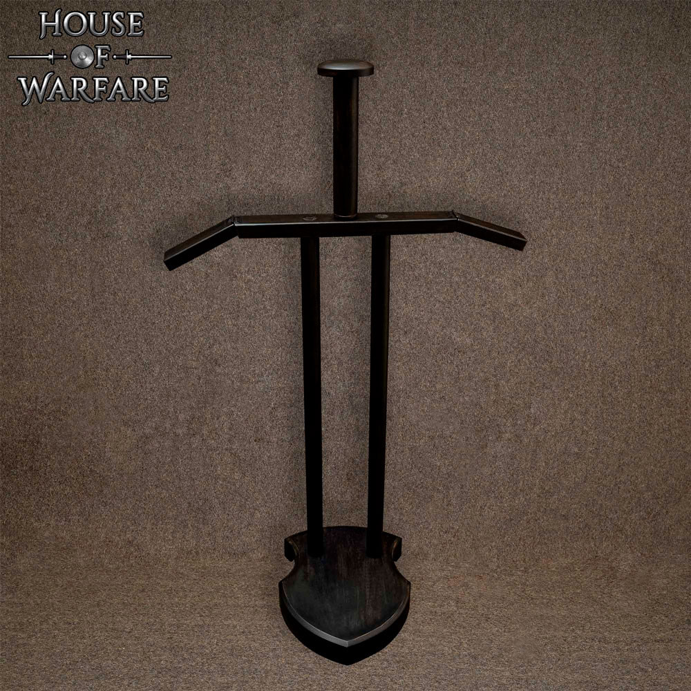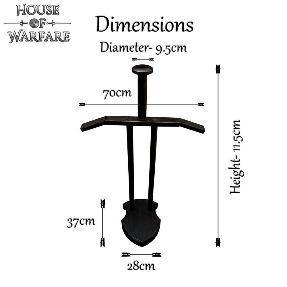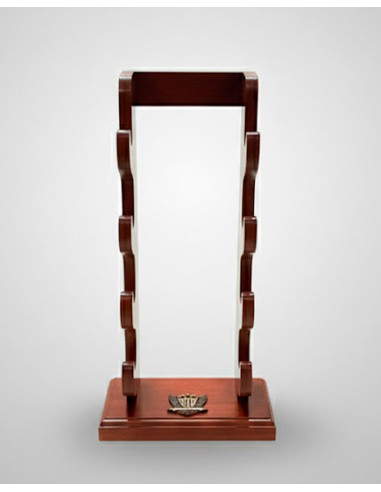 Realizzato in legno di prima qualità con finitura nera, offre una presenza sobria e sofisticata che si armonizza sia con spazi moderni che con ambienti classici. La scelta del legno garantisce resistenza e una base solida, mentre la finitura scura conferisce profondità visiva, facendo contrastare e risaltare l'armatura come in una mostra professionale.