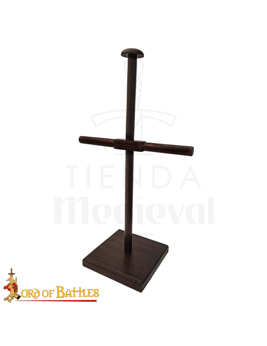 Il design a croce, con un palo verticale terminato in una testa tondeggiante e un braccio orizzontale con estremità cilindriche, sostiene elmi, corazze e pezzi di vestiario mantenendoli equilibrati e nella forma corretta. Questa geometria semplice e funzionale facilita il posizionamento e la rimozione dei pezzi con rapidità, utile sia per musei che per eventi tematici e rappresentazioni dal vivo.