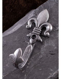 Set composto da 2 supporti da parete molto decorativi a forma di giglio medievale. Sono realizzati in metallo e possono essere fissati al muro con una sola vite. Utilizzati in coppia, questi ganci da parete offrono una soluzione perfetta per esporre/conservare pistole, fucili e altre armi da fuoco.