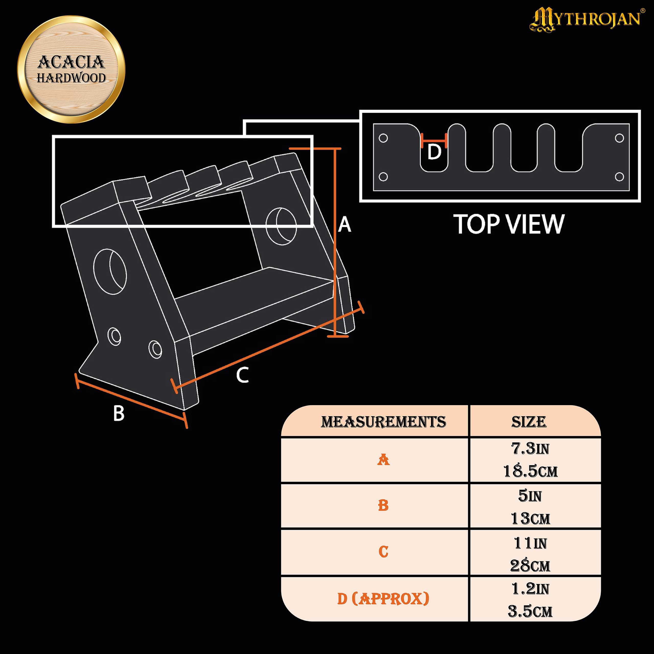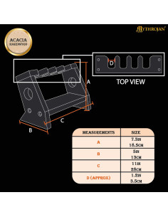 Con dimensioni di 28 x 13 x 18,5 cm, questo supporto offre la dimensione ideale per esporre al meglio le tue armi. Ogni fessura, di circa 3,5 cm, è stata accuratamente progettata per garantire che le tue armi siano esposte in modo sicuro ed esteticamente gradevoli, evidenziandone la presenza in qualsiasi spazio.