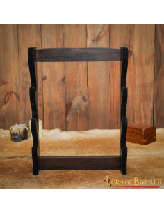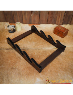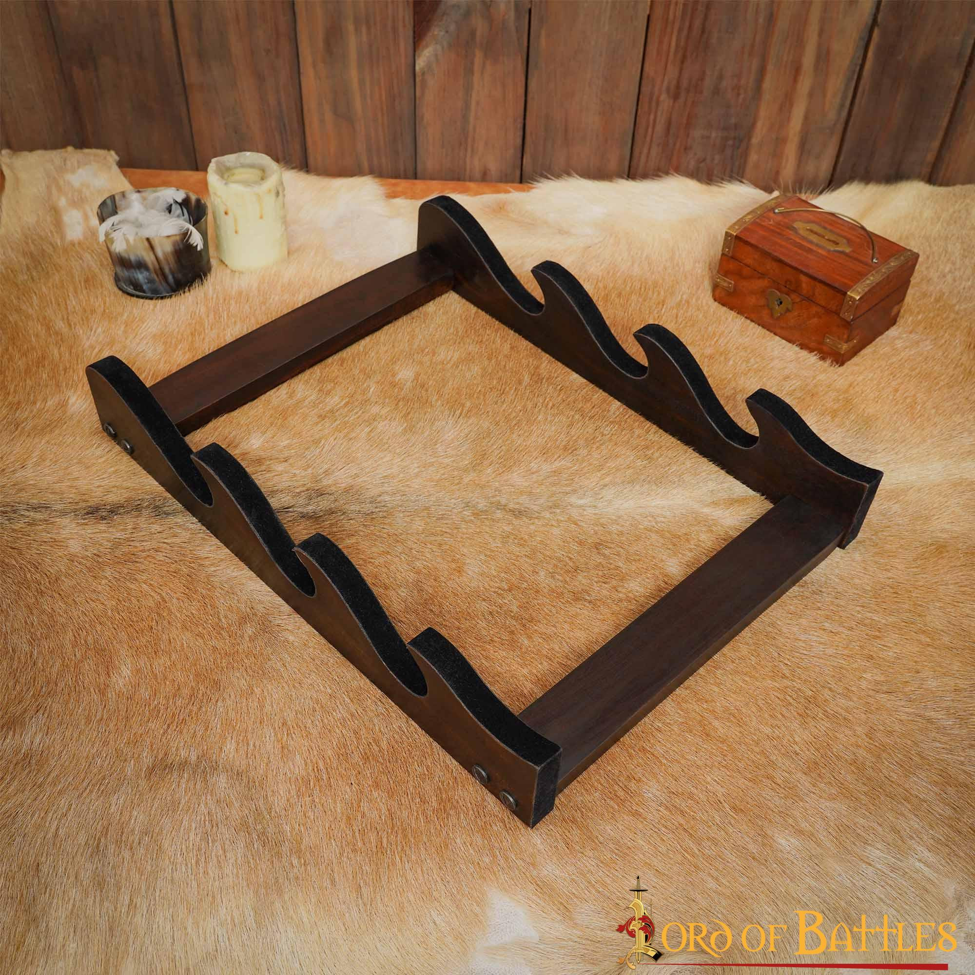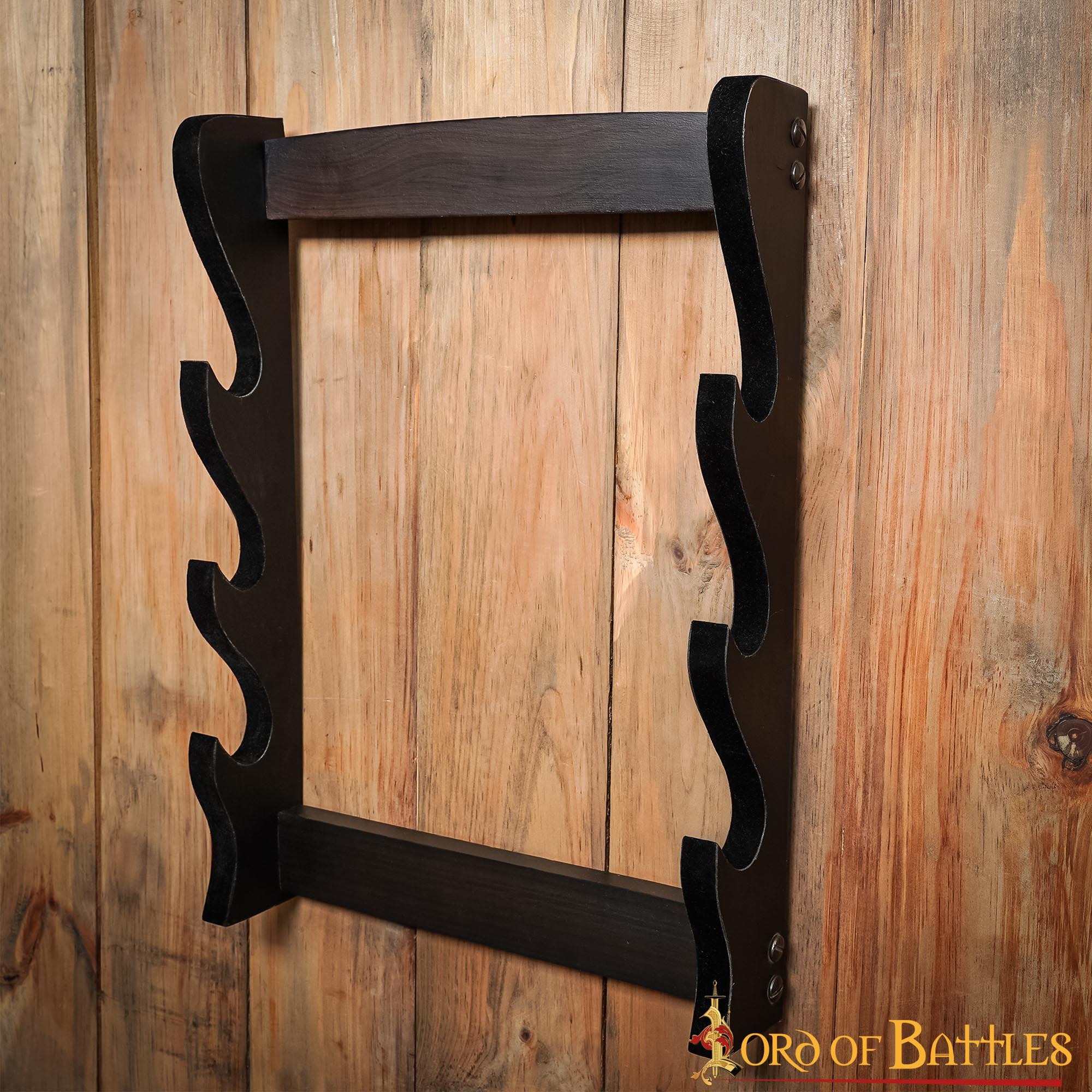 Sei un amante della spada e dell'ascia con una collezione in crescita che ha bisogno di un posto d'onore? Il nostro supporto da parete per 3 spade o asce, realizzato a mano dagli abili artigiani di Lord Of Battles in legno duro, è la scelta perfetta per esporre le tue preziose armi con eleganza e stile.