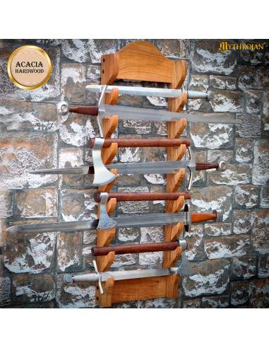 Mostra le tue spade con eleganza e stile con il nostro espositore per spade da parete - Triangolo - Legno. Questo magnifico espositore non solo offre un modo funzionale per esporre le tue preziose spade, ma aggiunge anche un tocco di autenticità e distinzione a qualsiasi spazio.