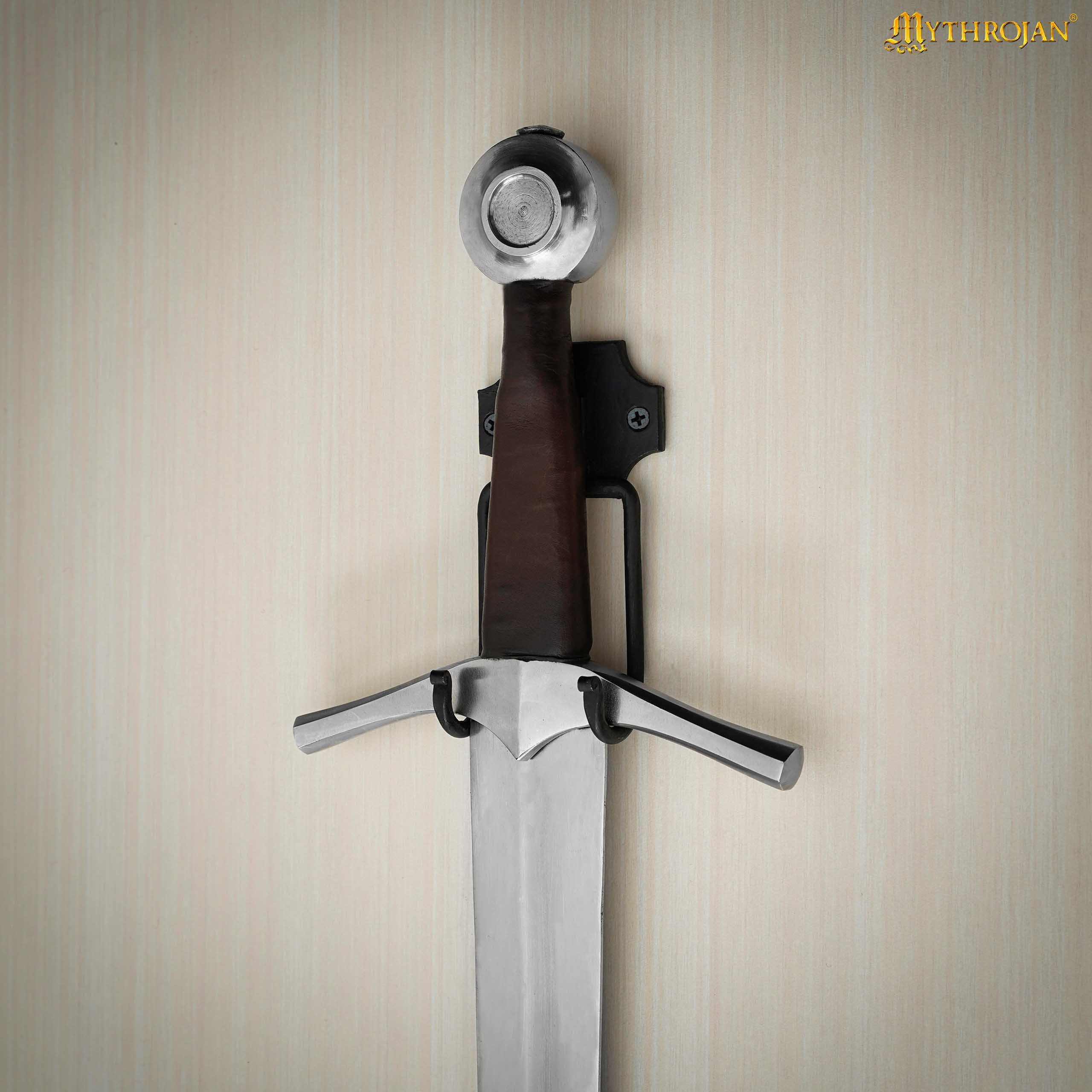 Trasforma il tuo spazio con il supporto da parete per spada medievale in ferro battuto di Mythrojan, progettato per fornire una presentazione impressionante e duratura delle tue armi. A differenza di altri supporti fragili, questo è realizzato in acciaio massiccio di alta qualità, garantendo resistenza e durata nel corso degli anni. Mentre le versioni più sottili e cave possono piegarsi sotto il peso di spade pesanti, la nostra posizione è fatta per resistere, senza comprometterne l'integrità.