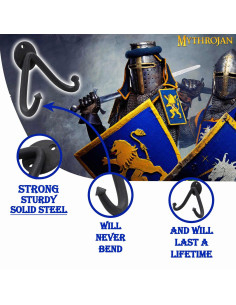 Dimentica gli imitatori di bassa qualità. In Mythrojan, un'azienda statunitense orgogliosa della sua artigianalità, garantiamo che il nostro supporto offre la struttura più solida e durevole sul mercato. L'installazione è semplice: basta avvitare il supporto al muro e appendere le tue armi senza preoccuparti del peso, poiché è progettato per sostenere carichi significativi.