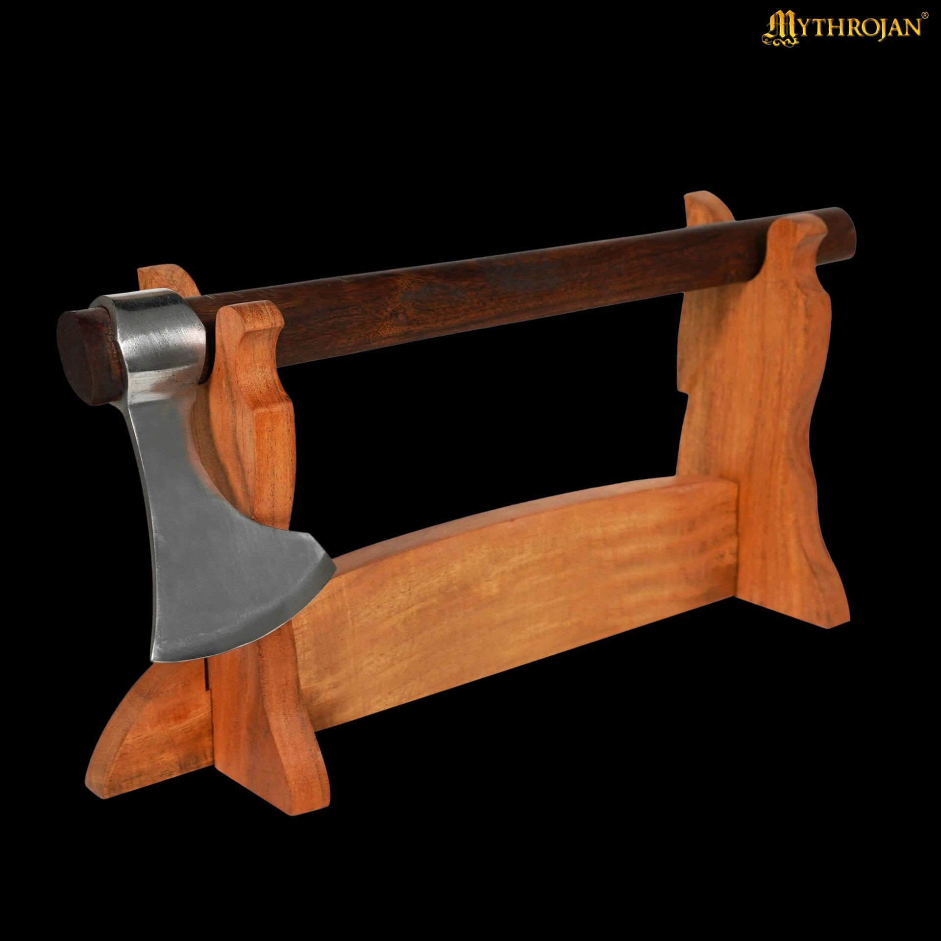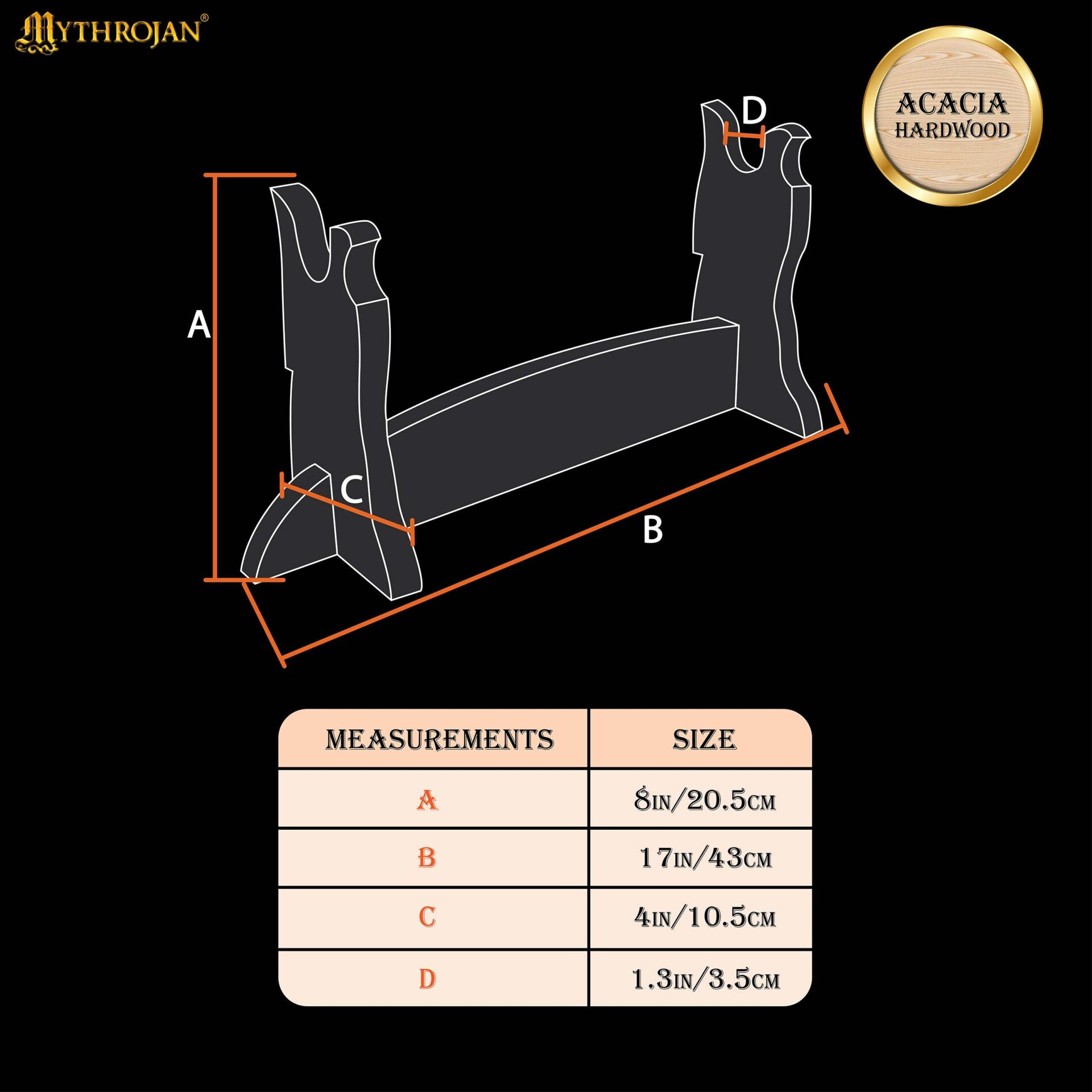 Questo supporto fatto a mano in legno massiccio di acacia combina robustezza e calore, affinché la tua spada sia non solo al sicuro, ma aggiunga anche carattere all'ambiente. La venatura visibile e il colore caldo del legno esaltano la bellezza dell'arma, creando un contrasto elegante che si adatta perfettamente a un soggiorno, uno studio o una vetrina tematica.