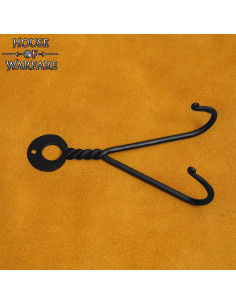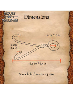 Il collo attorcigliato e il design a doppio gancio non sono solo ornamentali, ma pensati per tenere saldamente il pomolo e prevenire spostamenti imprevisti. Le punte piegate verso l'interno offrono una presa aggiuntiva, in modo che la spada rimanga stabile sia in posizione verticale che con una leggera inclinazione, facilitando l'accesso e la visualizzazione.