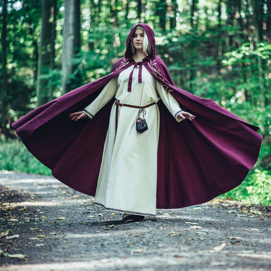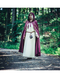 Mantello medievale in lana con cappuccio lungo modello Gora, marrone