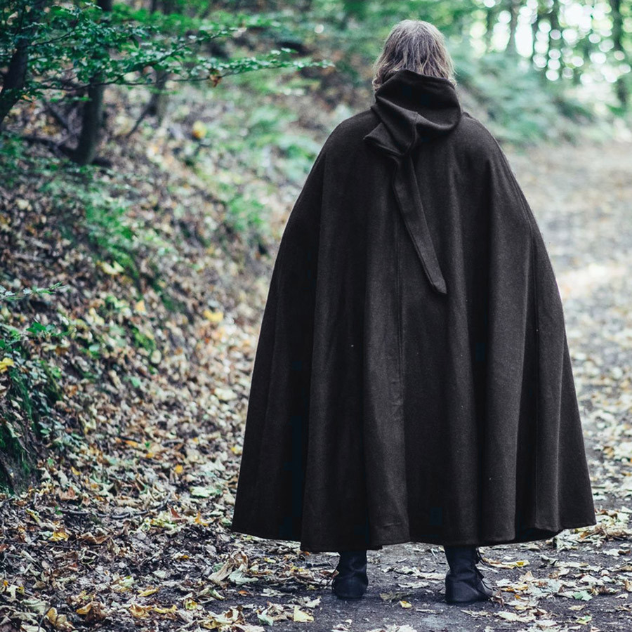 Mantella medievale in cotone nero, modello Frantz