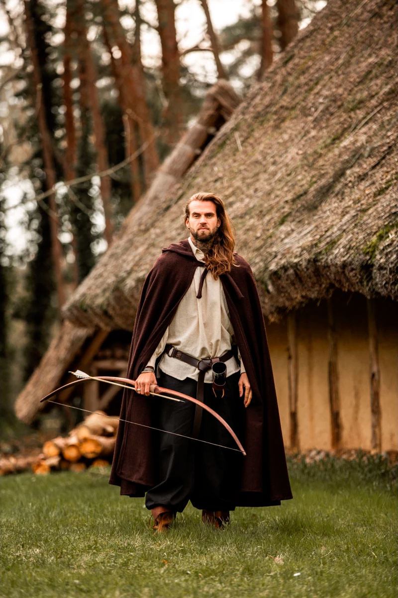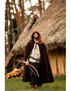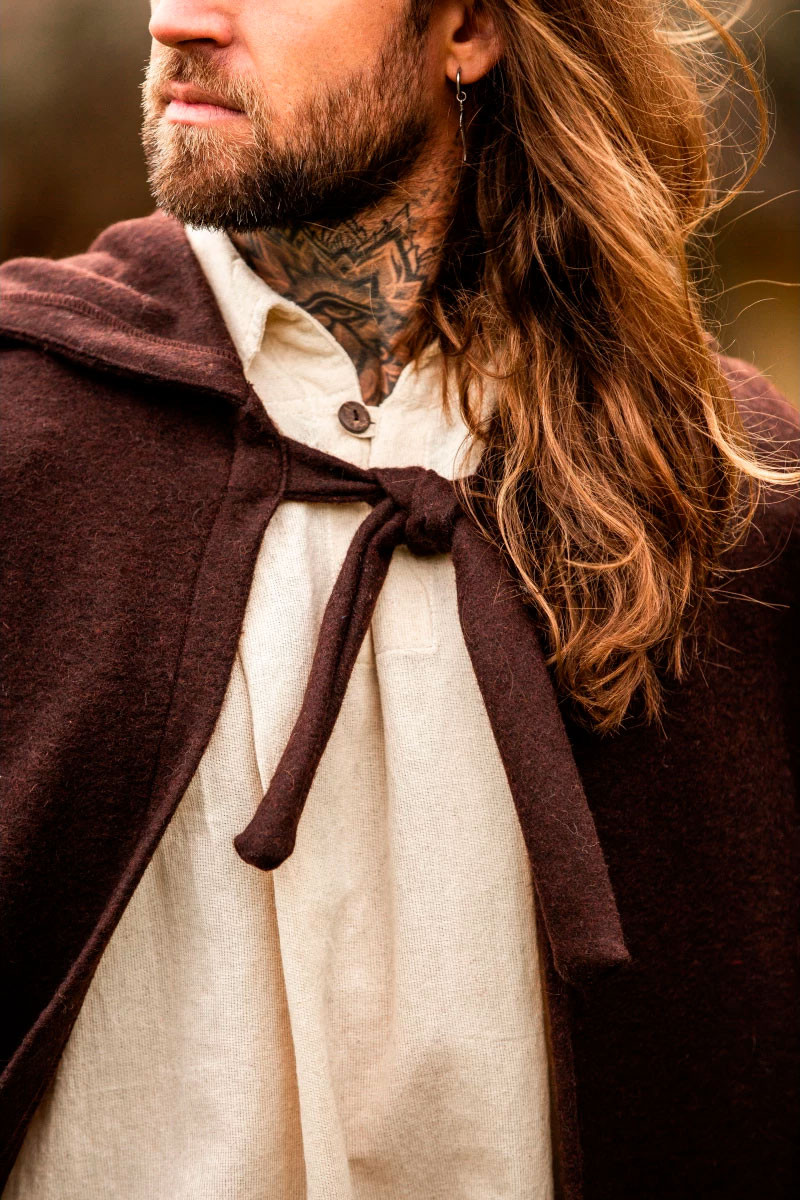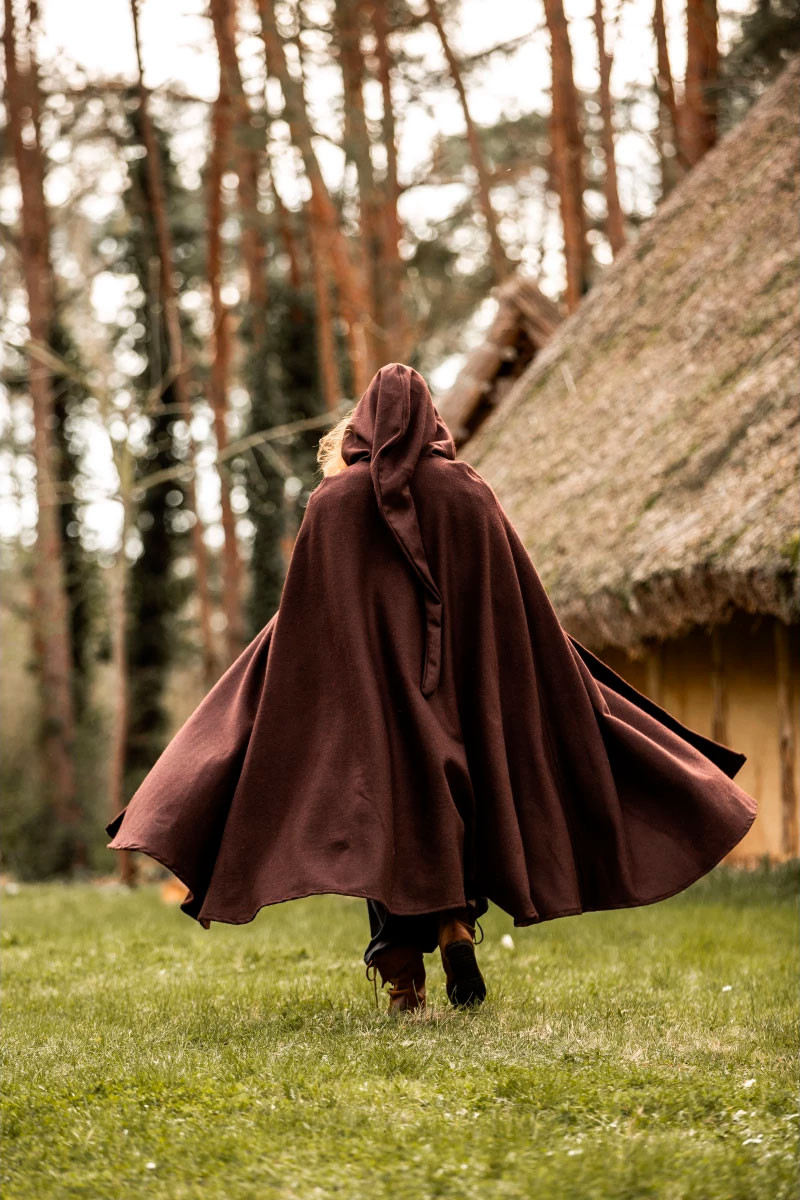 Mantello elfico in lana con cappuccio e fermaglio in ottone