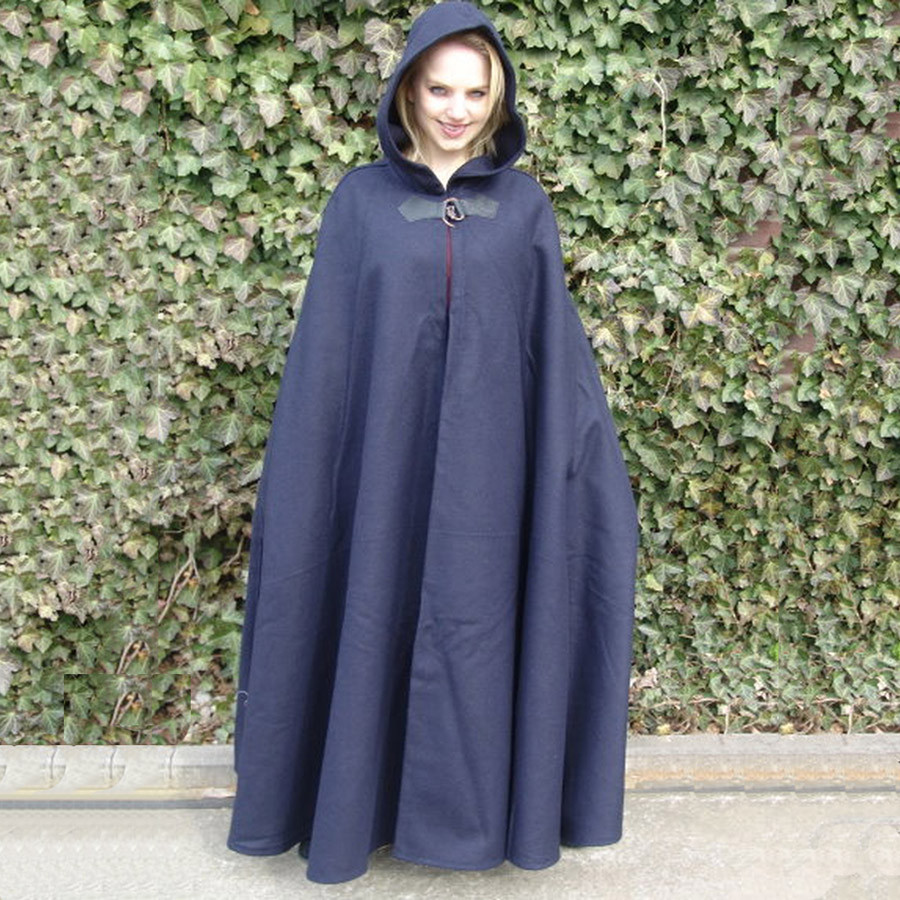 Mantella medievale in lana marrone con ricami a mano, modello Alma