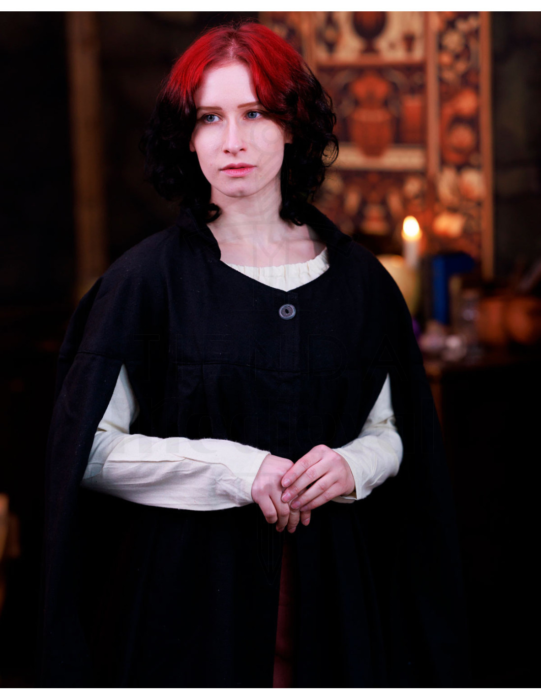 Il mantello medievale -Bron- è l'accessorio perfetto per aggiungere eleganza e mistero al tuo outfit. Il suo taglio ampio e il collo alto ti faranno risaltare in ogni occasione medievale. Ma non solo, questa mantella ti terrà anche al caldo e comodo per tutto l'evento.