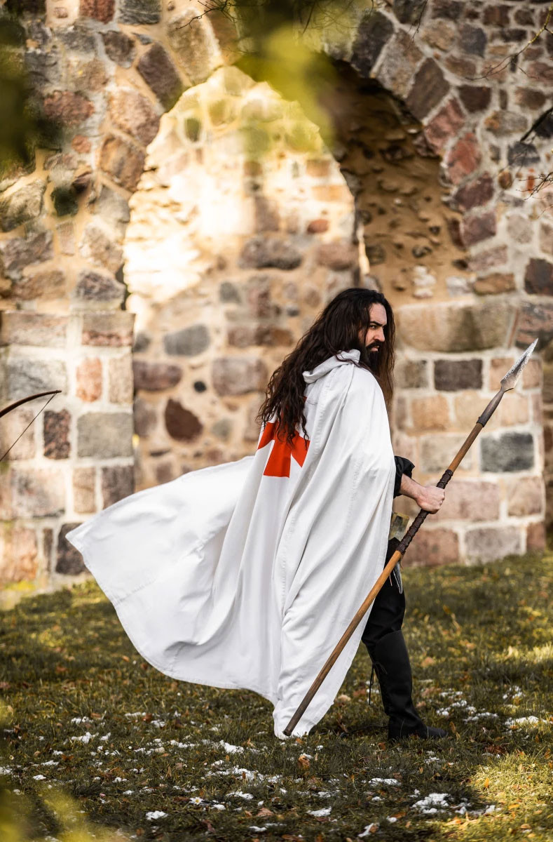 Mantella medievale corta con chiusura a fibbia, modello Ilmar, marrone 160 cm.