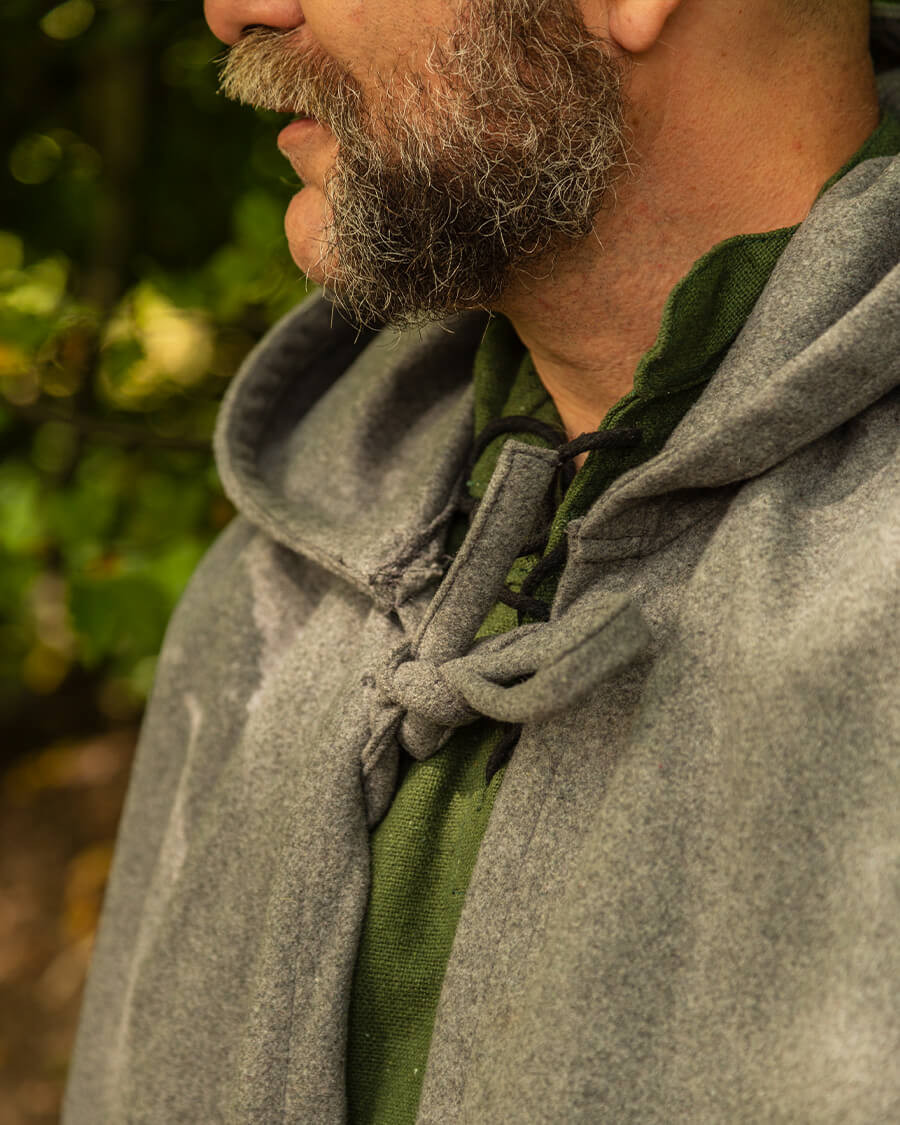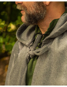 Cappa medieval in lana con cappuccio e fermaglio