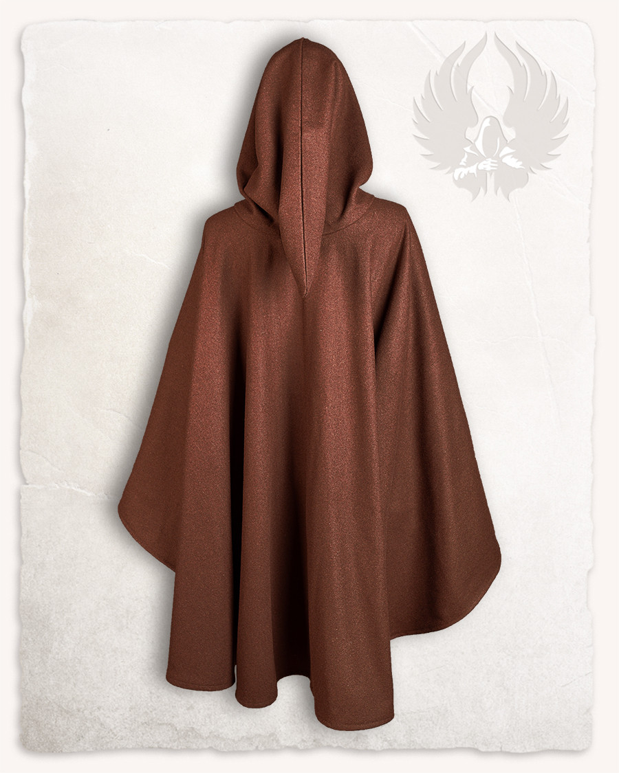 Mantello medievale lungo modello Raik, marrone 160 cm.