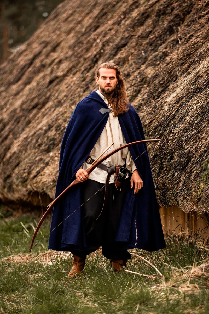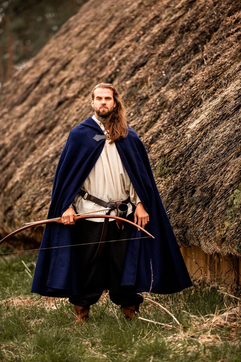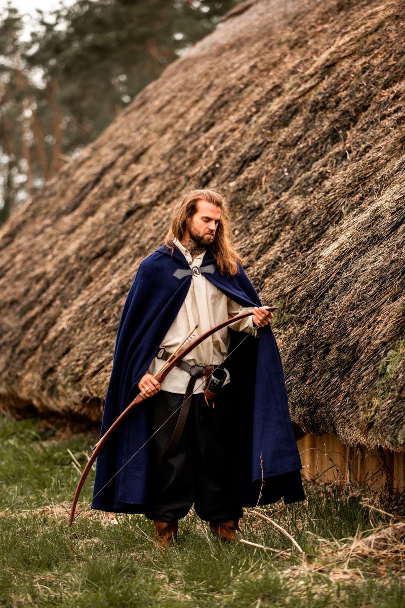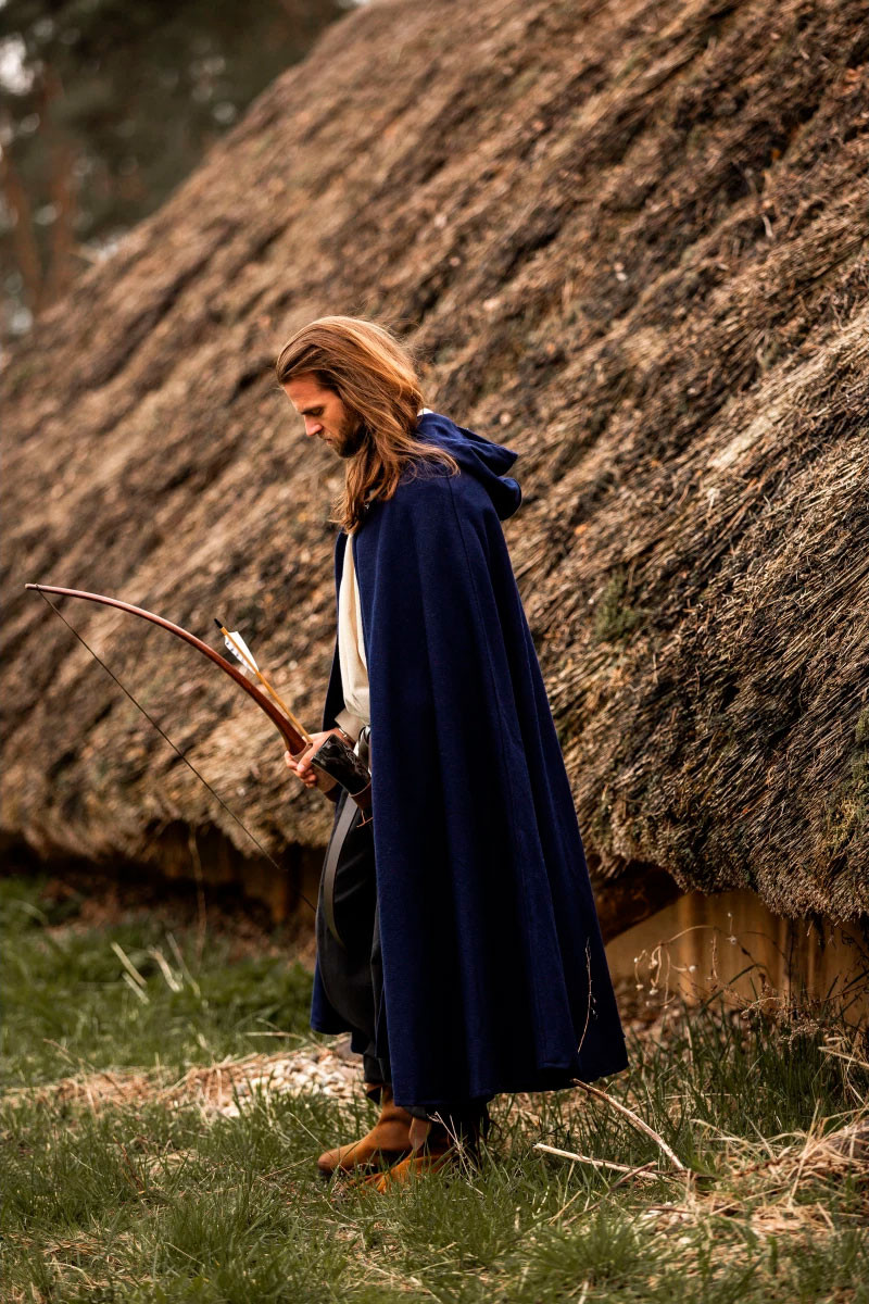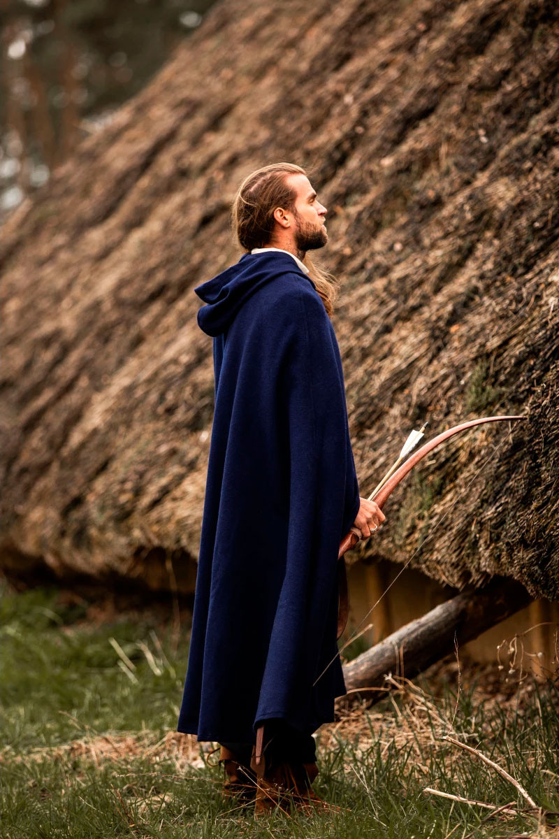 Parti per un'avventura medievale con lo splendido mantello di lana Tjark in blu! Questo mantello ti immergerà nell'atmosfera dell'epoca avvolgendoti in comfort e stile. Con un cappuccio che misura 131 cm di lunghezza e 231 cm di larghezza, questo mantello offre una copertura eccezionale senza compromettere la libertà di movimento.
