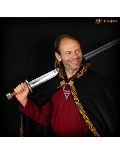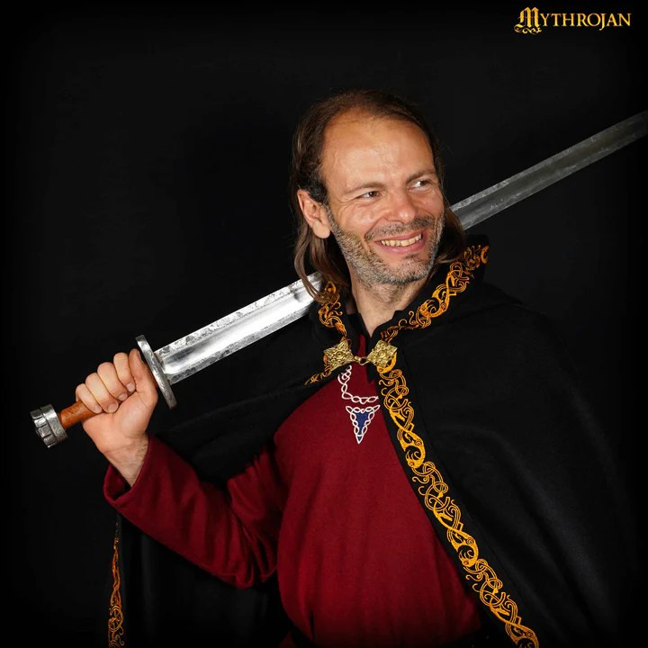Questo mantello medievale in lana nera, con i suoi bordi decorati e la spilla in ottone massiccio, è molto più di un accessorio. È progettato per accompagnarti in qualsiasi evento epico o rievocazione storica, sia in un banchetto di nozze medievale o nel calore di una battaglia immaginaria. Realizzato in lana di alta qualità, ti offre resistenza e comfort, surclassando completamente gli strati economici che durano solo una notte.